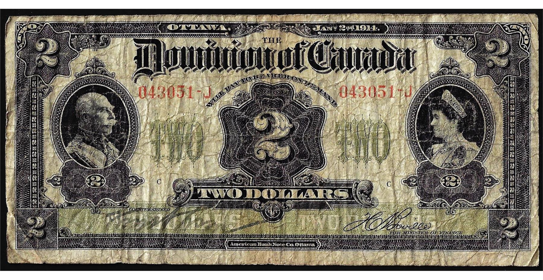 One 1914 $2 Dominion Bank of Canada Note.