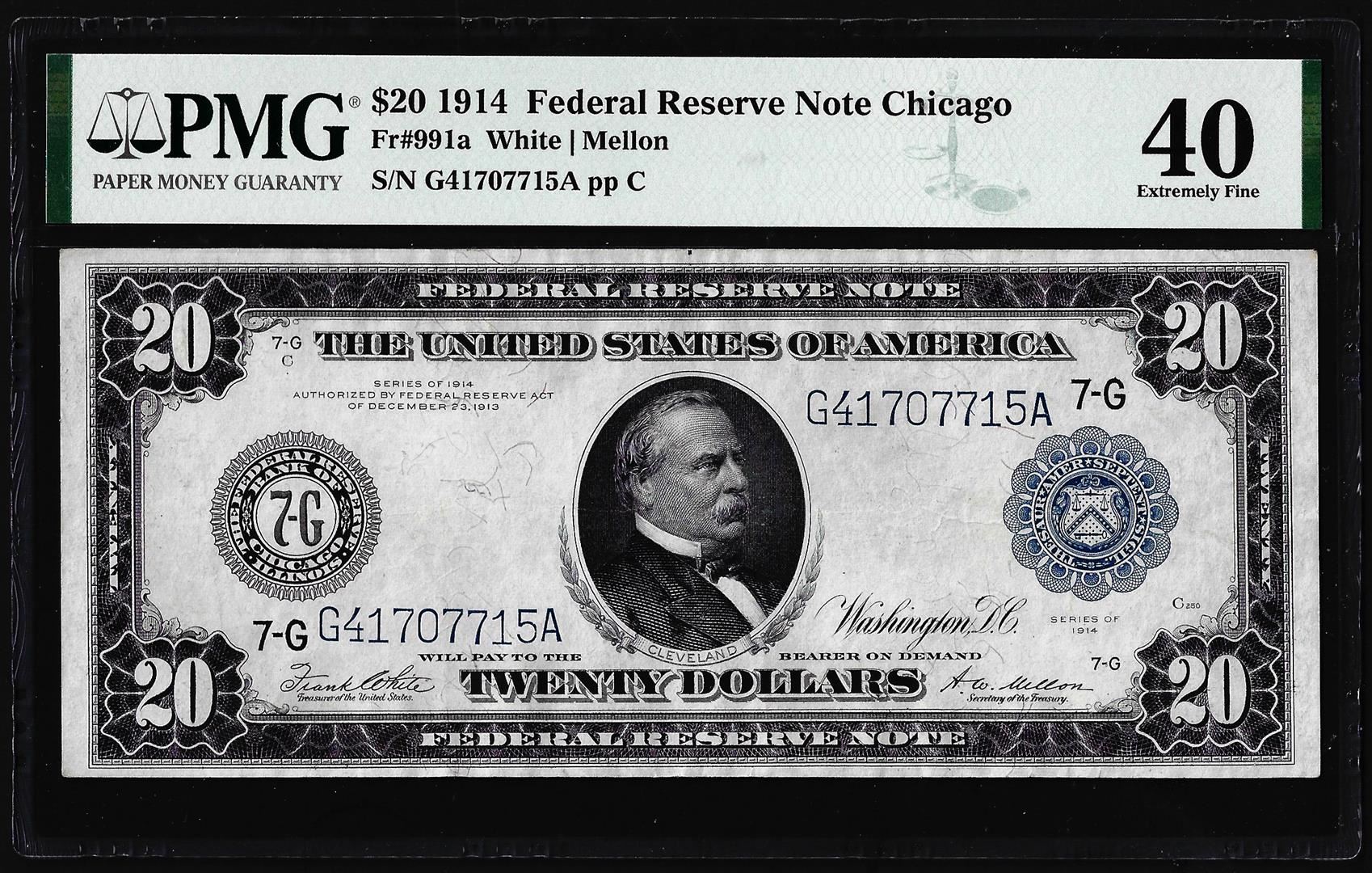 1914 $20 Federal Reserve Note Chicago Fr.991a PMG Extremely Fine 40