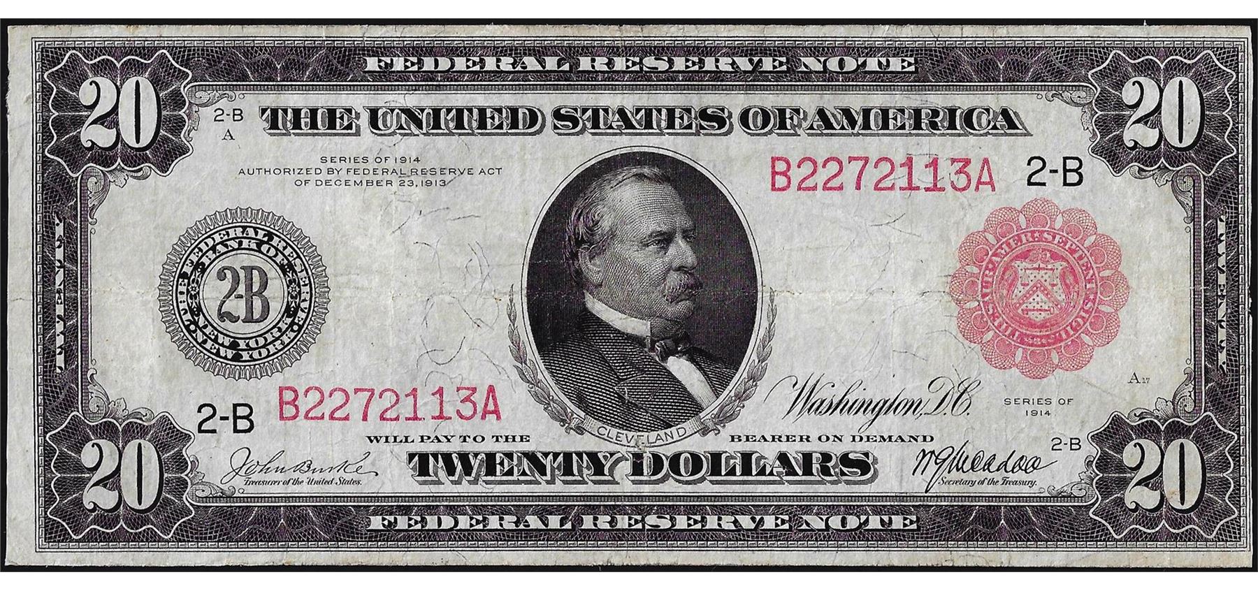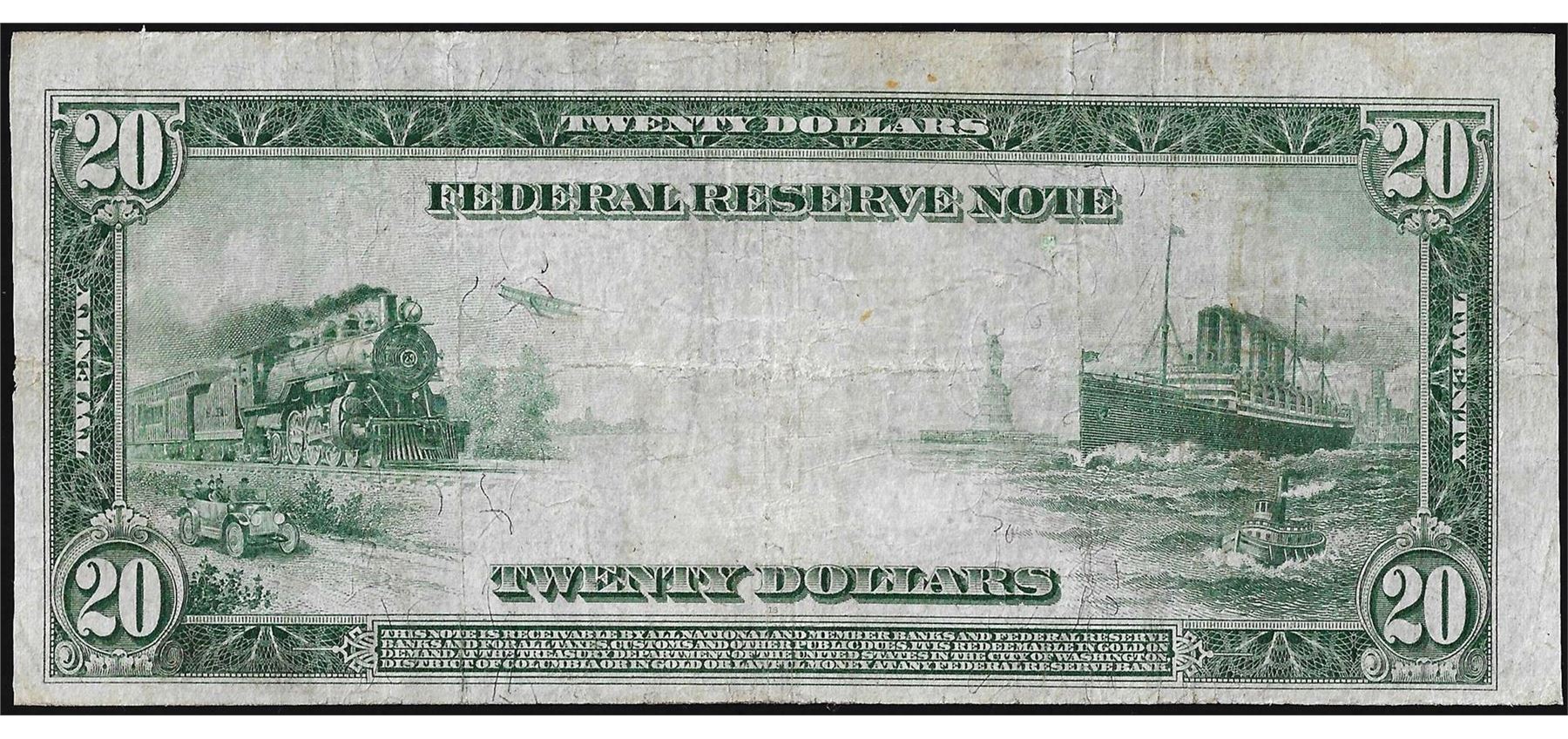 One 1914 $20 Federal Reserve Note Red Seal New York.