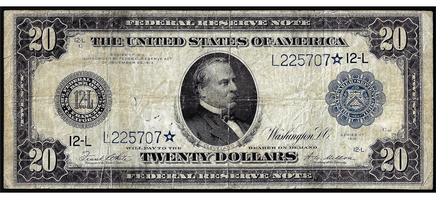 One 1914 $20 Federal Reserve STAR Note San Francisco.