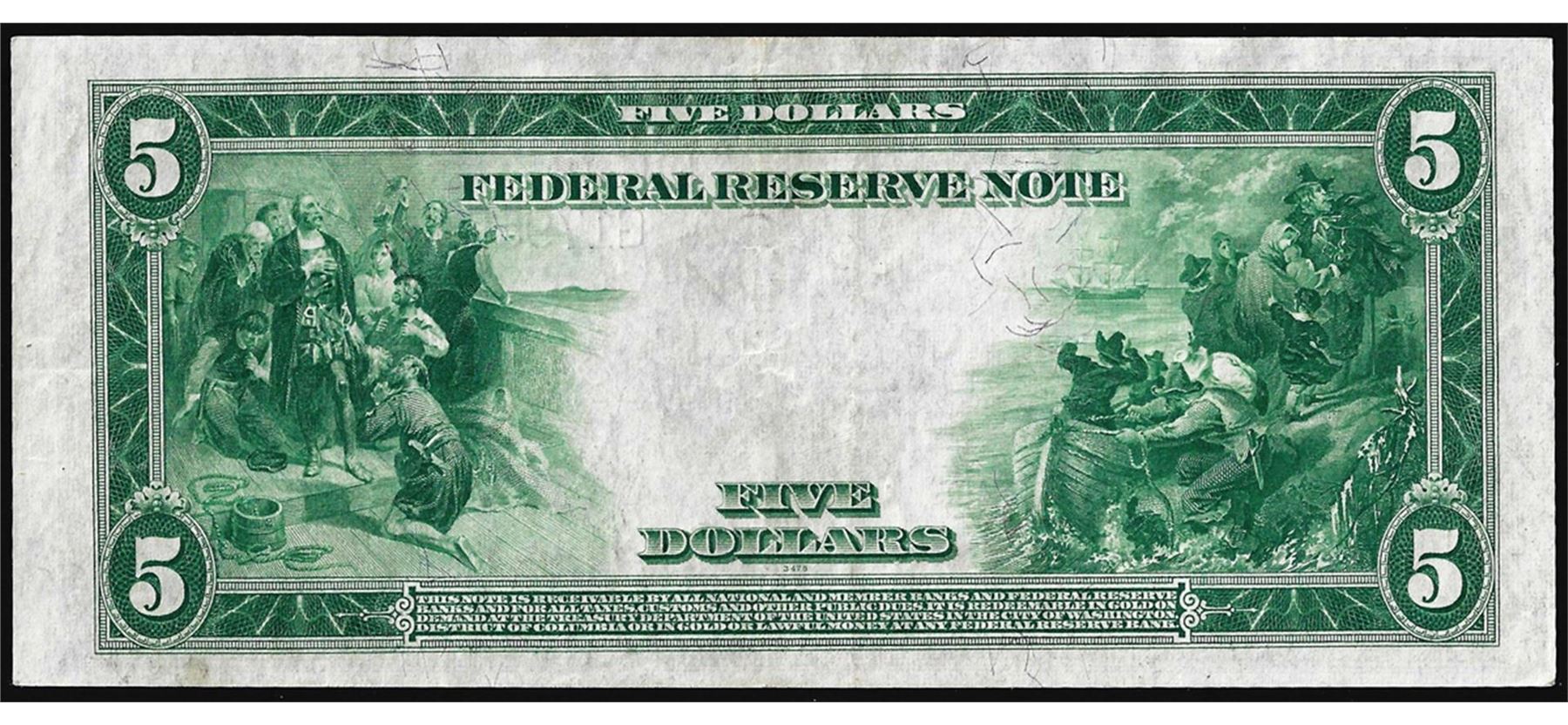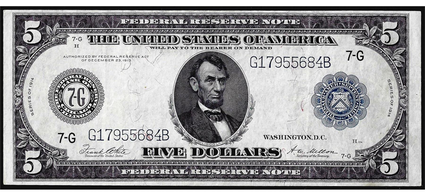 One 1914 $5 Federal Reserve Bank Note Chicago.