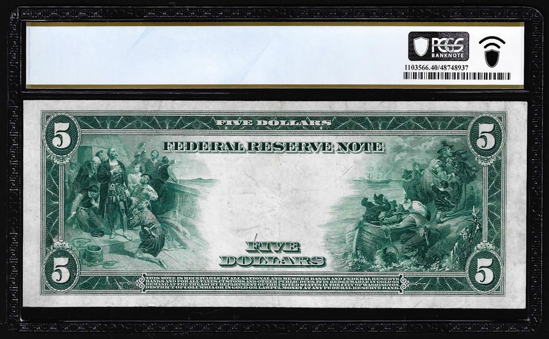 1914 $5 Federal Reserve Note Kansas City Fr.883A PCGS Extremely Fine 40