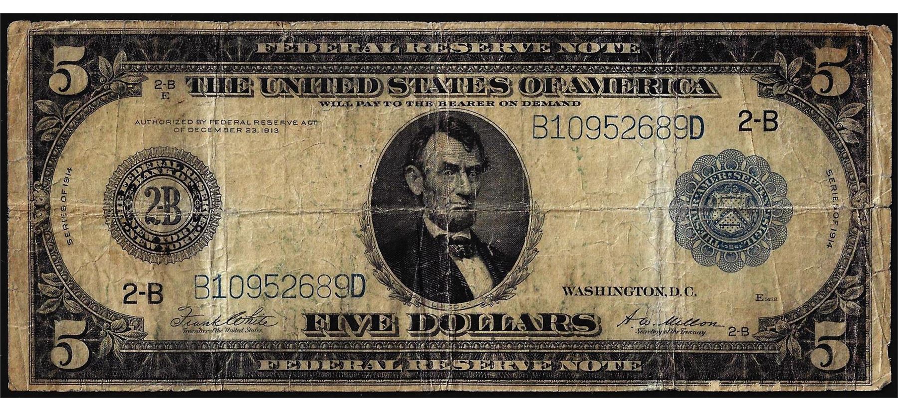 One 1914 $5 Federal Reserve Note New York.