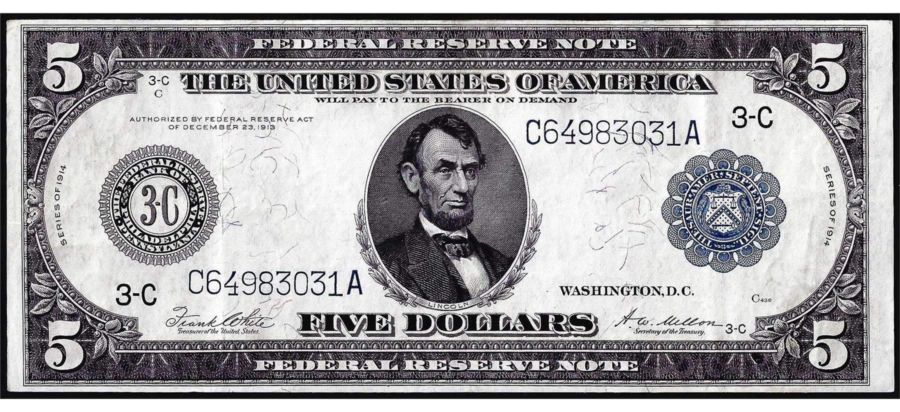 1914 $5 Federal Reserve Note Philadelphia
