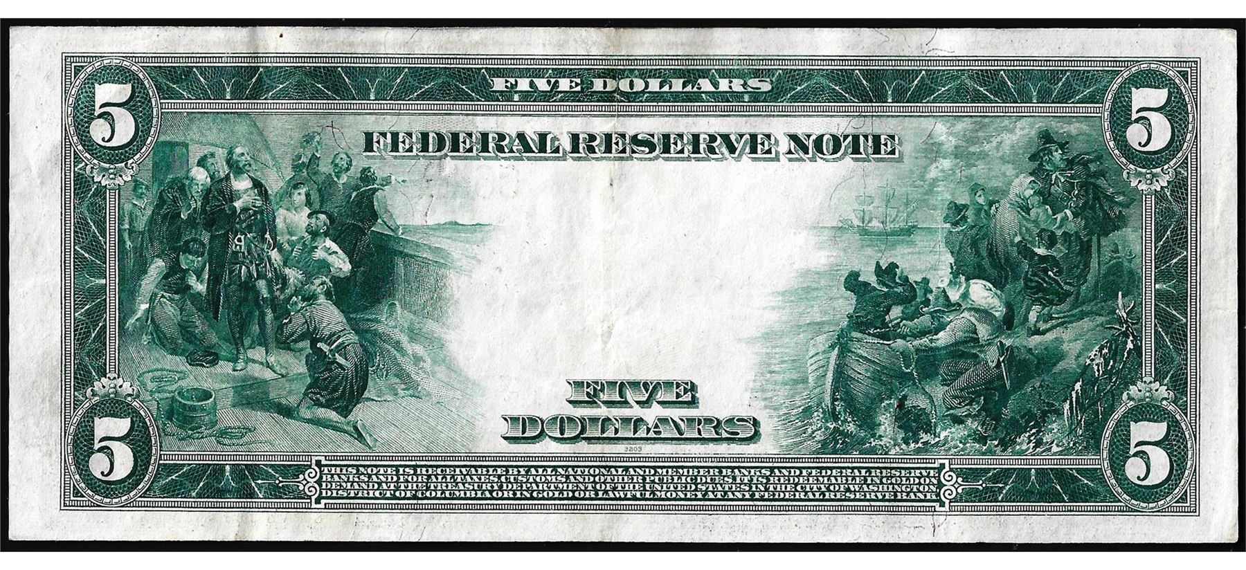 One 1914 $5 Federal Reserve Note Philadelphia.
