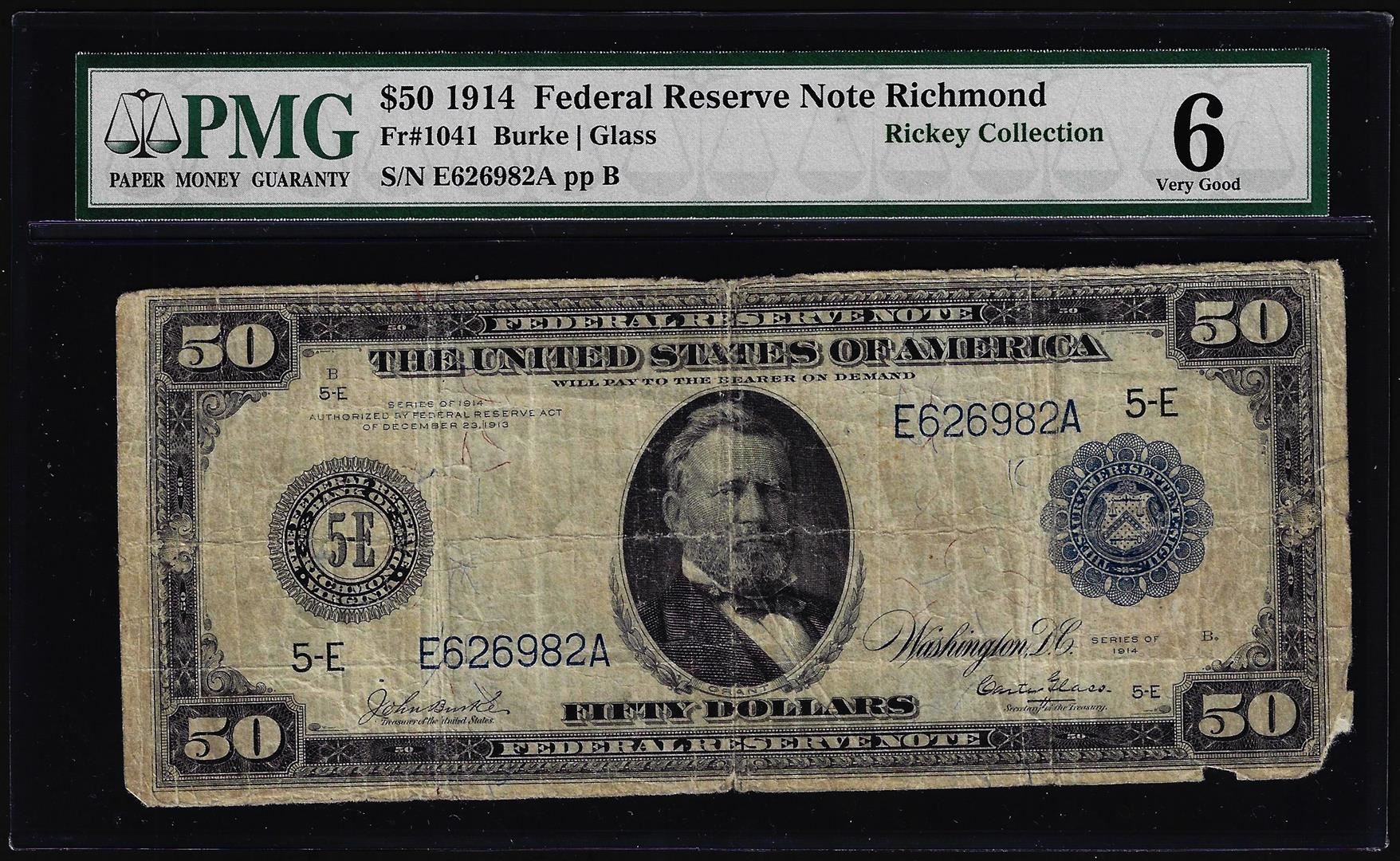 1914 $50 Federal Reserve Note Richmond Fr.1041 PMG Very Good 6