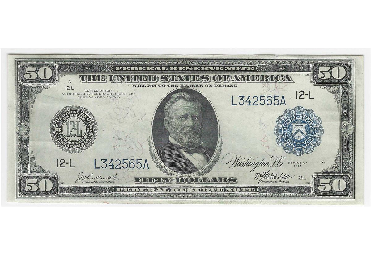 One 1914 $50 San Francisco Federal Reserve Note Currency Burke/McAdoo.