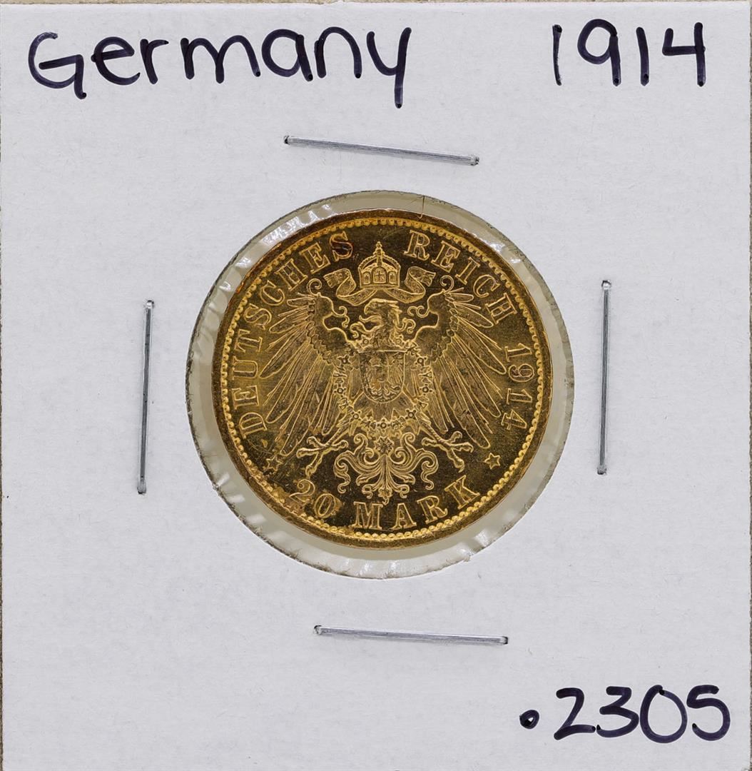 One 1914-A Germany-Prussia Wilhelm 20 Marks Gold Coin.