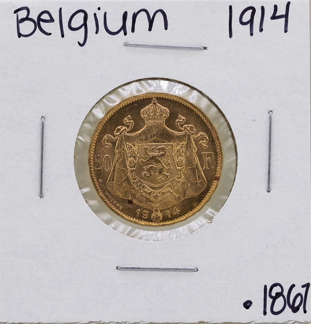 One 1914 Belgium King Albert 20 Francs Gold Coin.