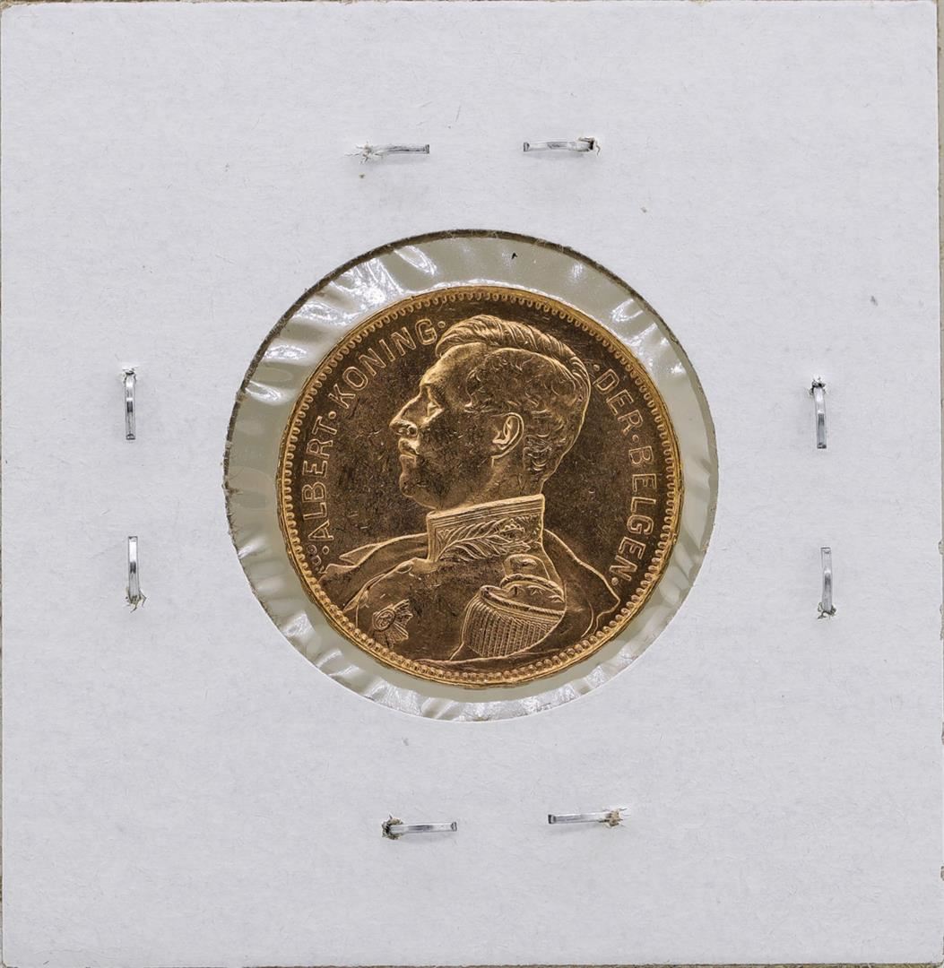 One 1914 Belgium King Albert 20 Francs Gold Coin.