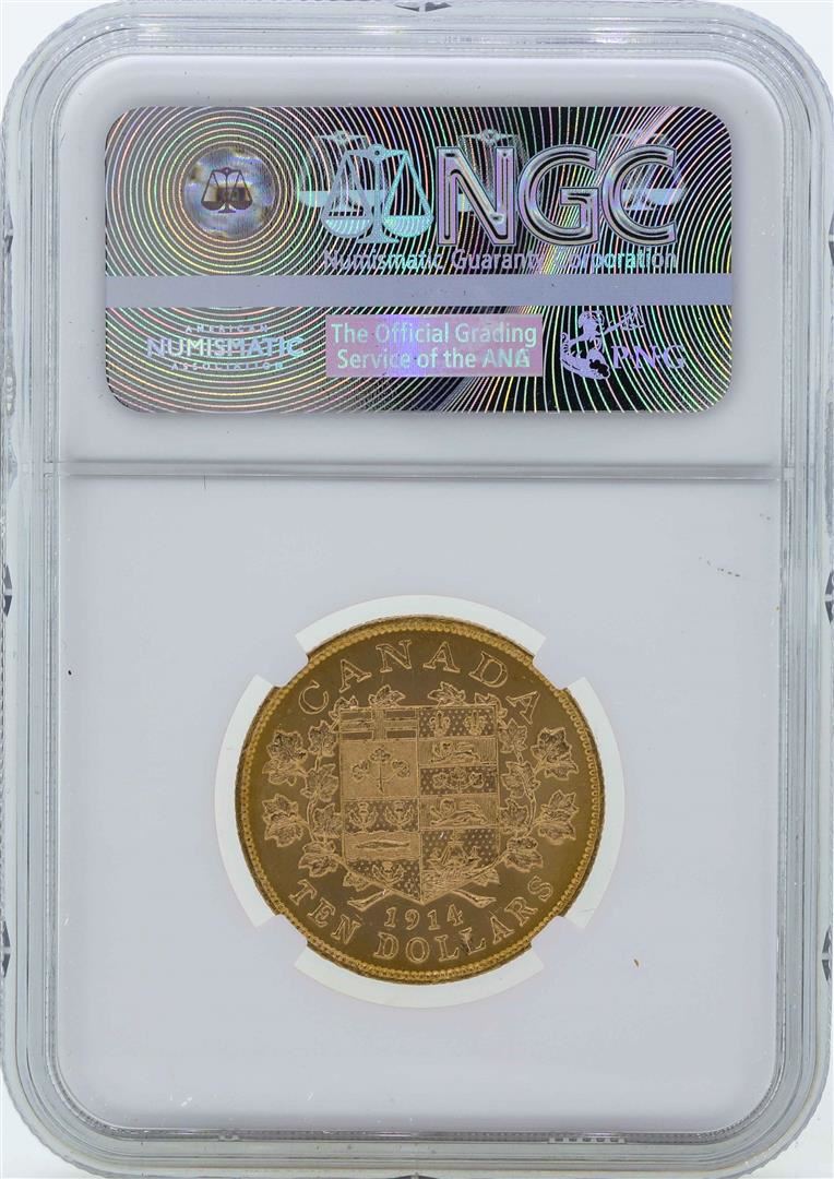 One 1914 Canada $10 George V Gold Coin NGC MS63. NGC Certified.
