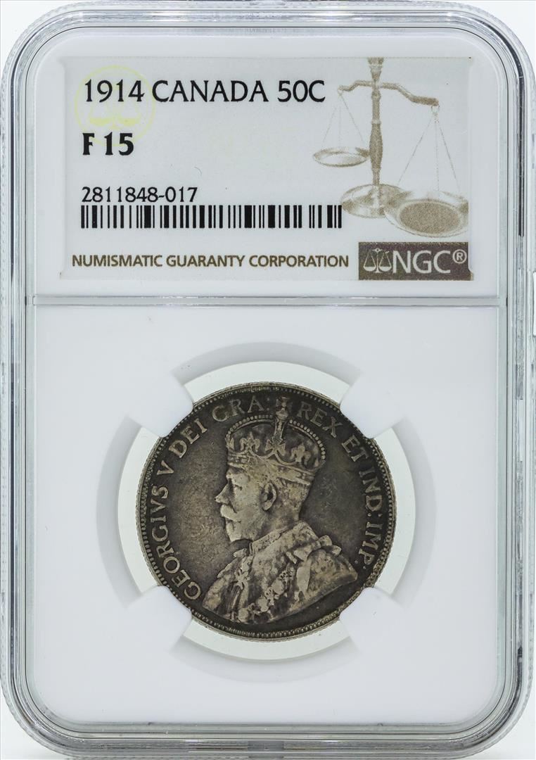 One 1914 Canada 50 Cent Coin NGC F15. NGC Certified.