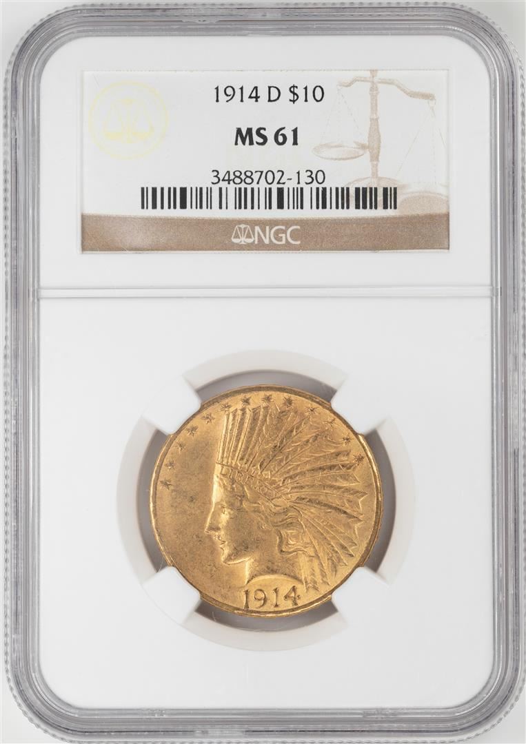 One 1914-D $10 Indian Head Eagle Gold Coin NGC MS61. NGC Certified.
