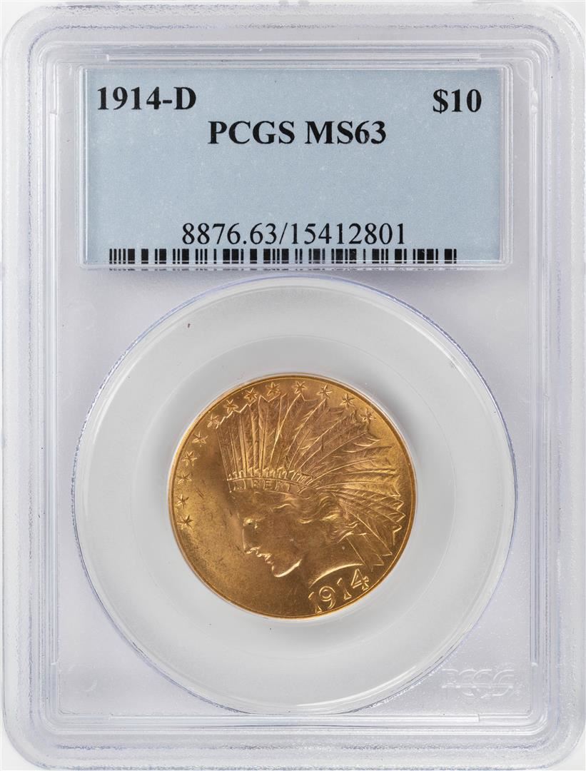 One 1914-D $10 Indian Head Eagle Gold Coin PCGS MS63. PCGS Graded.