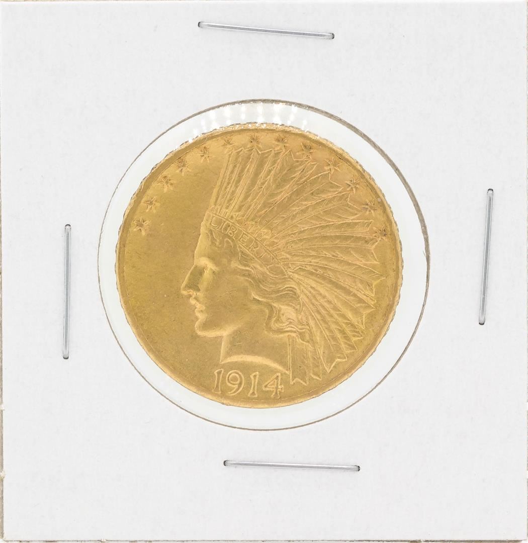 One 1914-D $10 Indian Head Eagle Gold Coin.