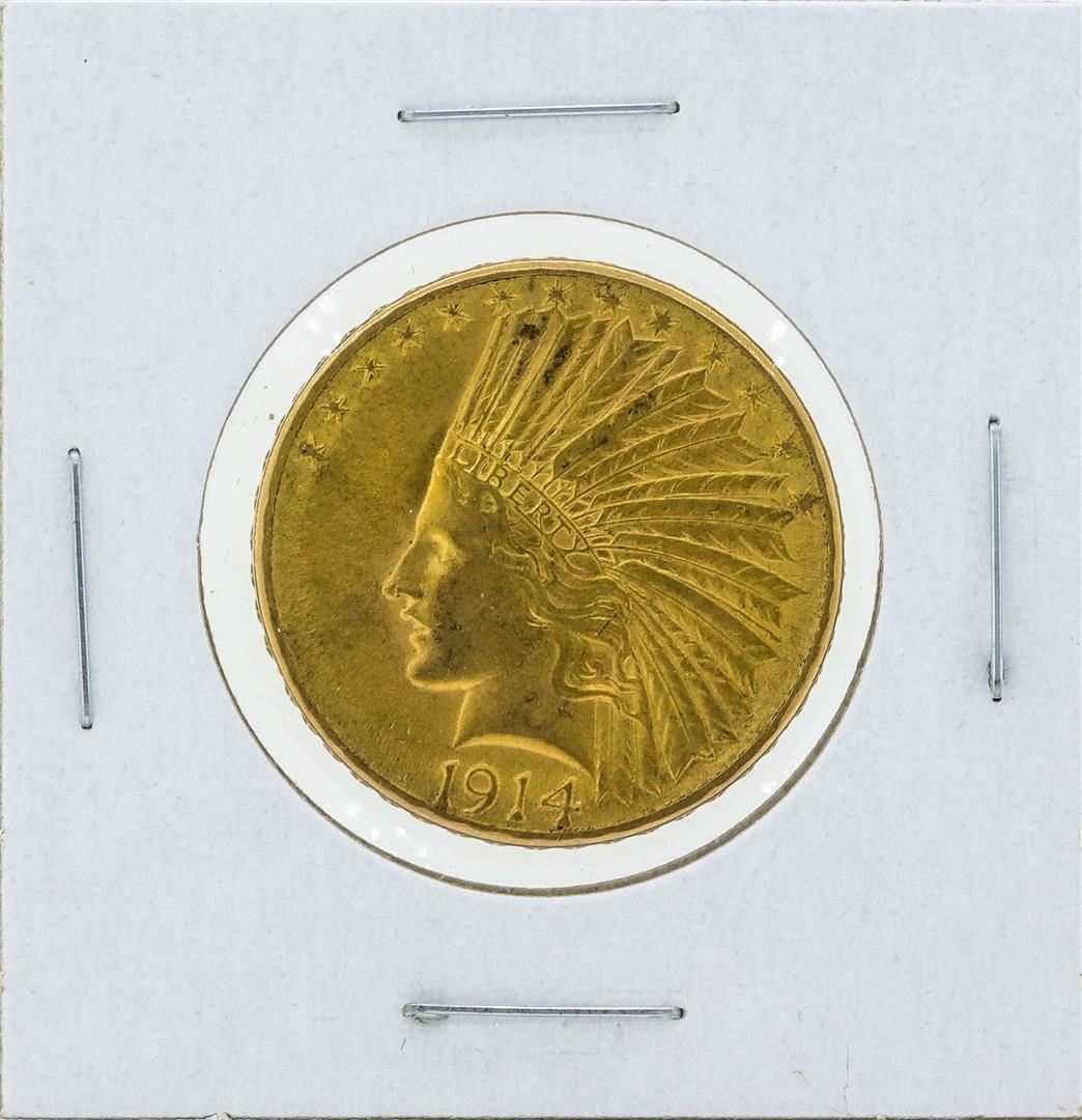 One 1914-D $10 Indian Head Eagle Gold Coin.