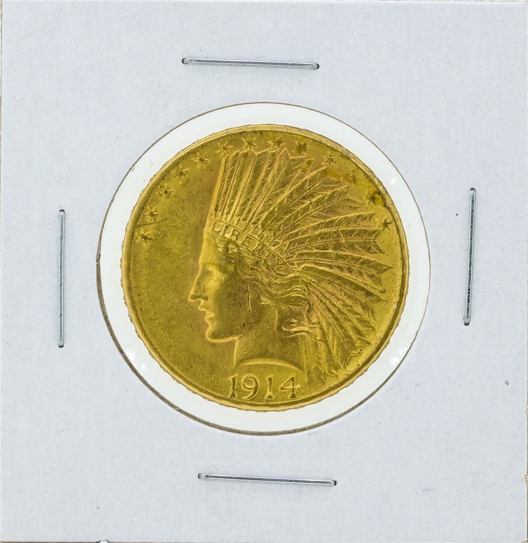 One 1914-D $10 Indian Head Eagle Gold Coin.