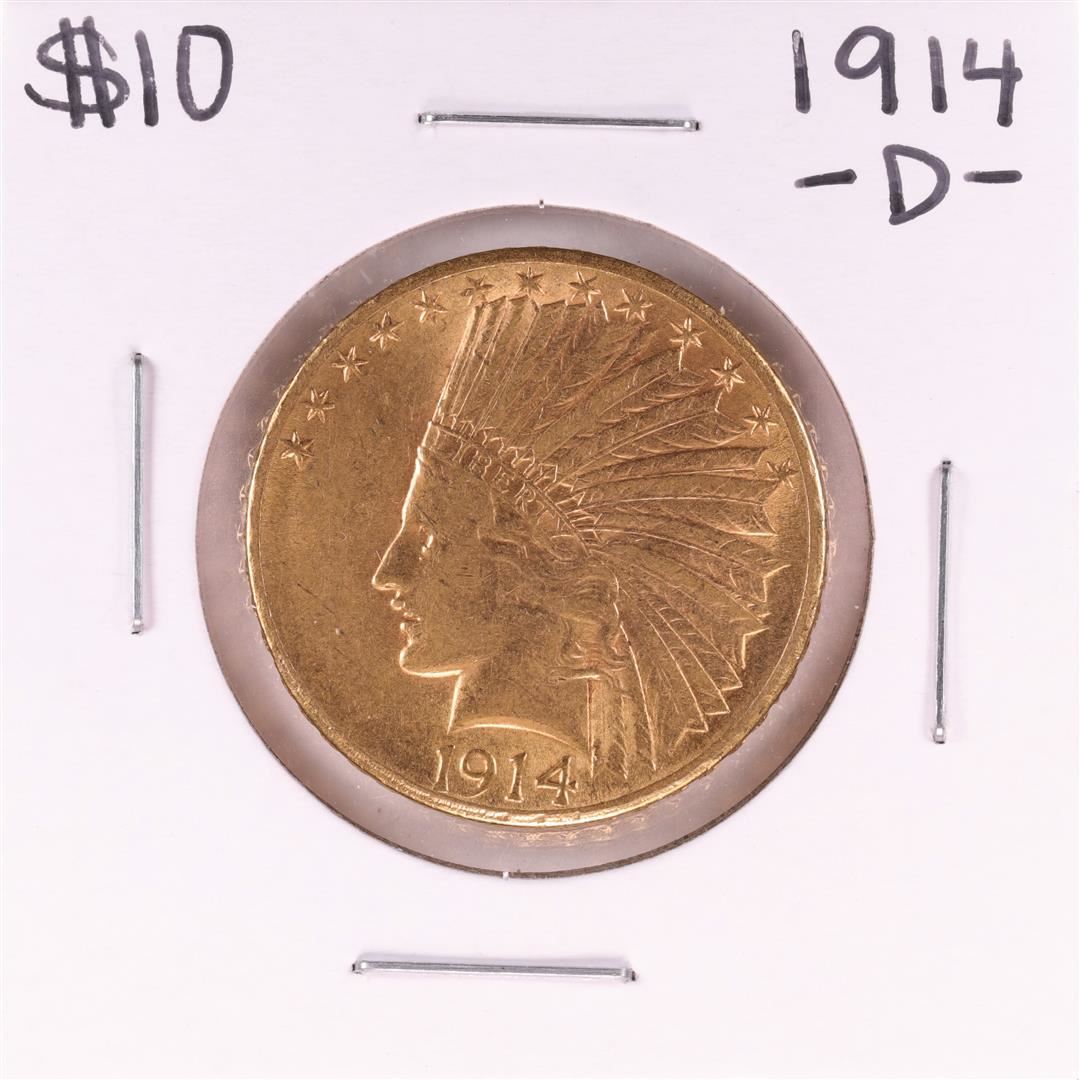 One 1914-D $10 Indian Head Eagle Gold Coin.