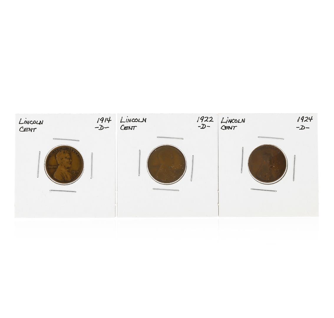 1914-D, 1922-D, 1924-D Lincoln Wheat Cent Key Date Set