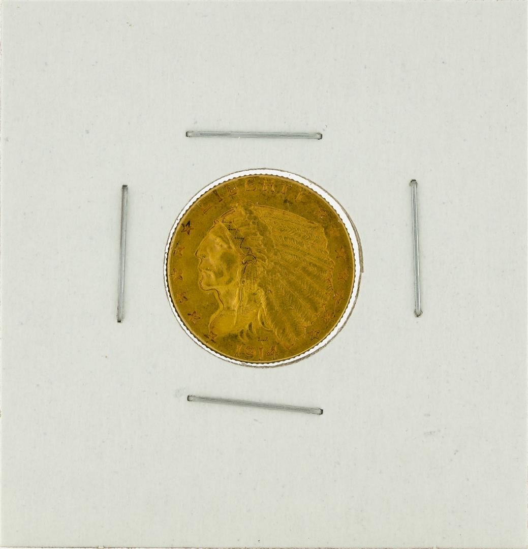 One 1914-D $2 1/2 Indian Head Quarter Eagle Gold Coin.