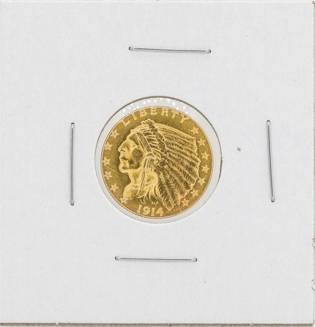 One 1914-D $2 1/2 Indian Head Quarter Eagle Gold Coin.