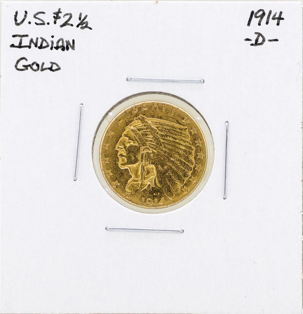 One 1914-D $2 1/2 Indian Head Quarter Eagle Gold Coin.