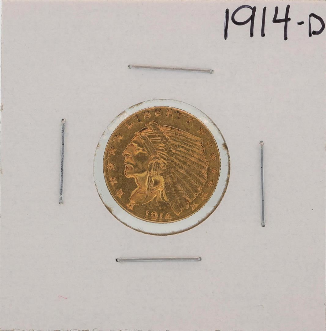 One 1914-D $2 1/2 Indian Head Quarter Eagle Gold Coin.