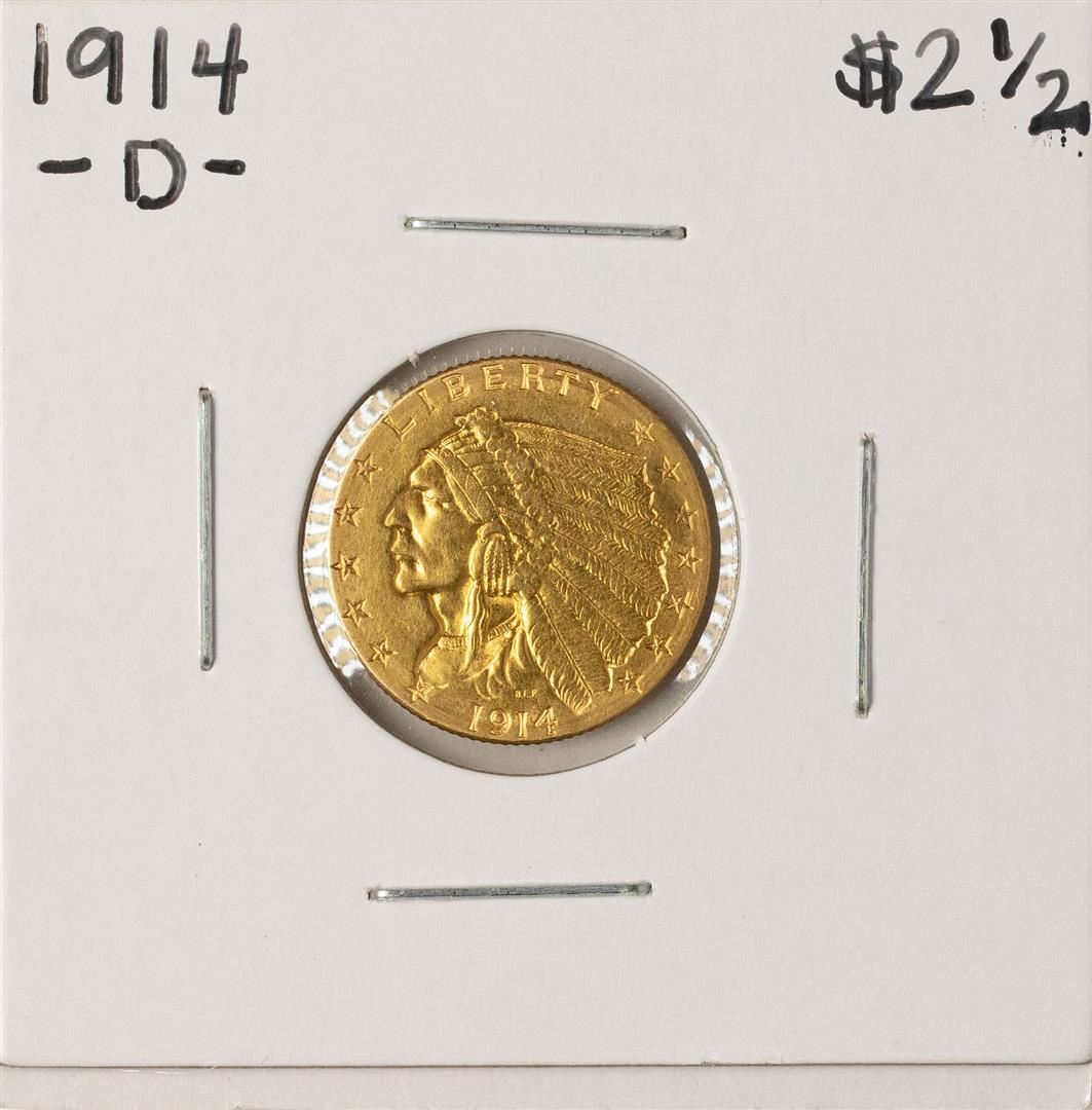 One 1914-D $2 1/2 Indian Head Quarter Eagle Gold Coin.