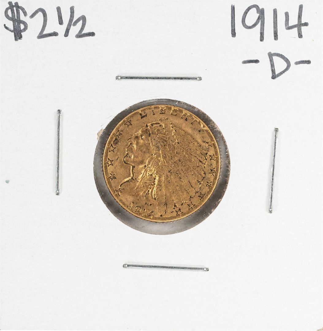 One 1914-D $2 1/2 Indian Head Quarter Eagle Gold Coin.