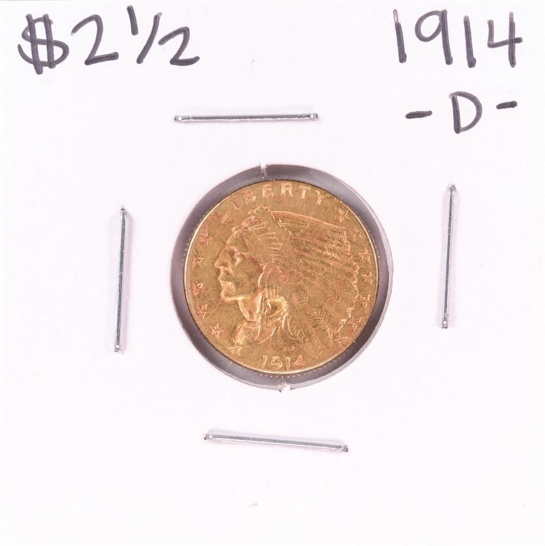 One 1914-D $2 1/2 Indian Head Quarter Eagle Gold Coin.