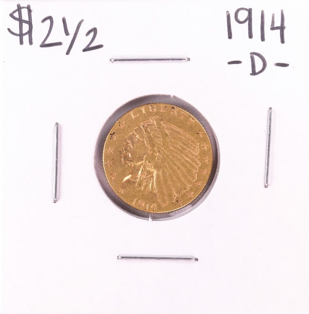One 1914-D $2 1/2 Indian Head Quarter Eagle Gold Coin.