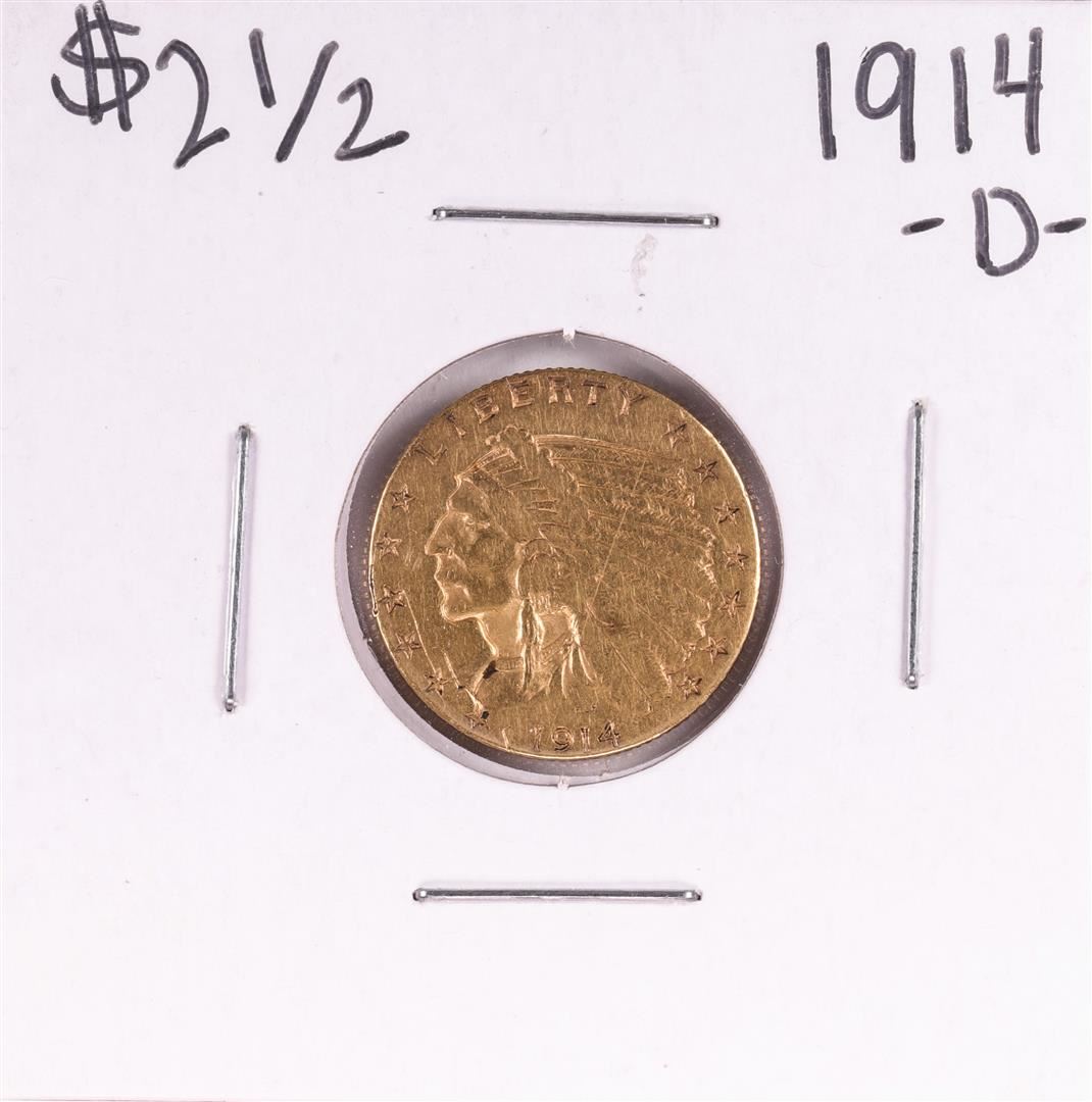 One 1914-D $2 1/2 Indian Head Quarter Eagle Gold Coin.