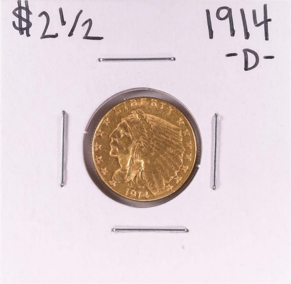 One 1914-D $2 1/2 Indian Head Quarter Eagle Gold Coin.