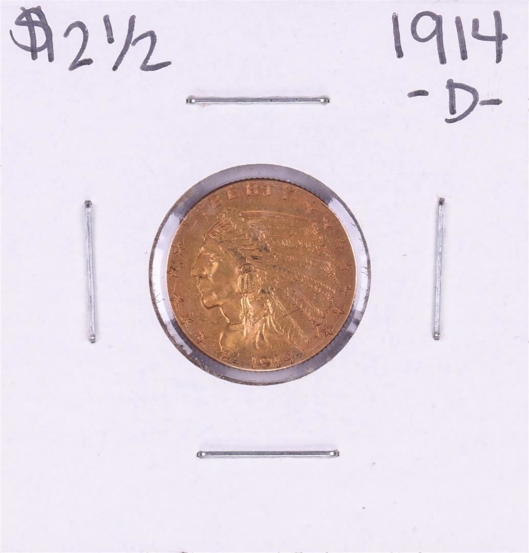 One 1914-D $2 1/2 Indian Head Quarter Eagle Gold Coin.