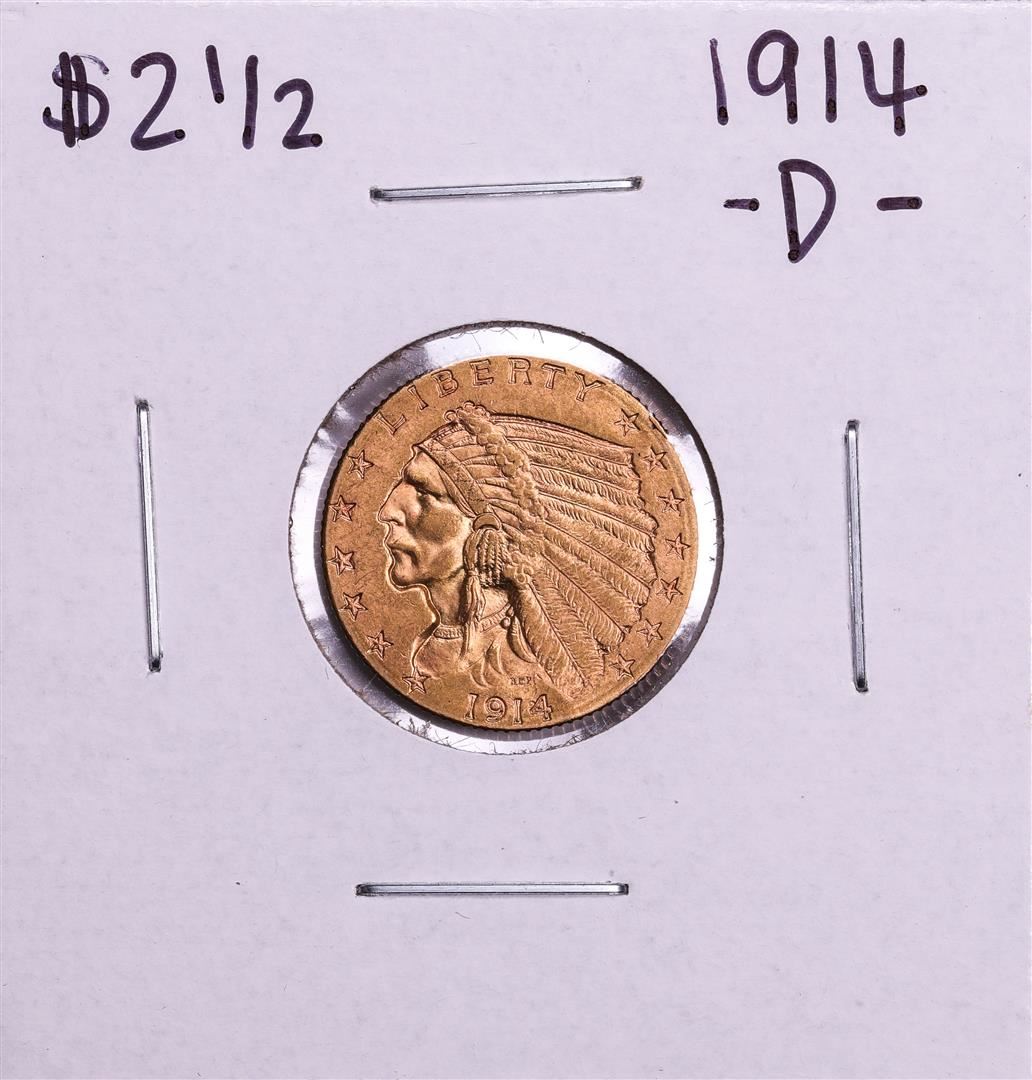 One 1914-D $2 1/2 Indian Head Quarter Eagle Gold Coin.