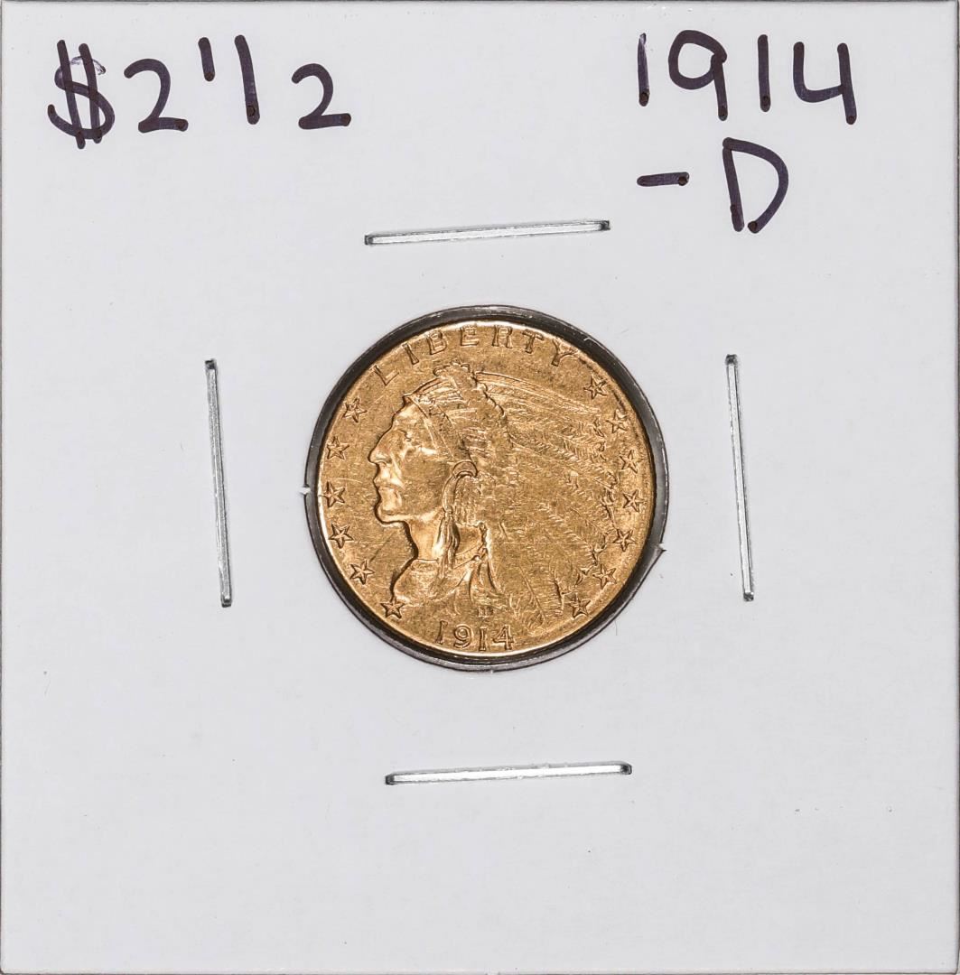 One 1914-D $2 1/2 Indian Head Quarter Eagle Gold Coin.
