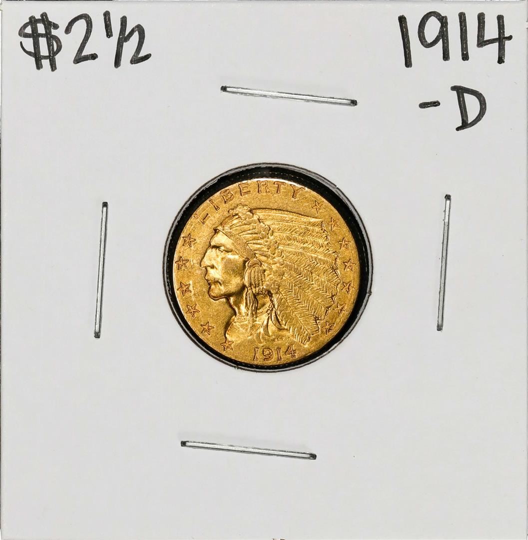 One 1914-D $2 1/2 Indian Head Quarter Eagle Gold Coin.