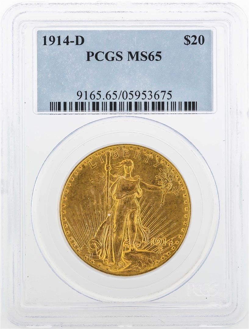 One 1914-D $20 St. Gaudens Double Eagle Gold Coin PCGS MS65. PCGS Graded.