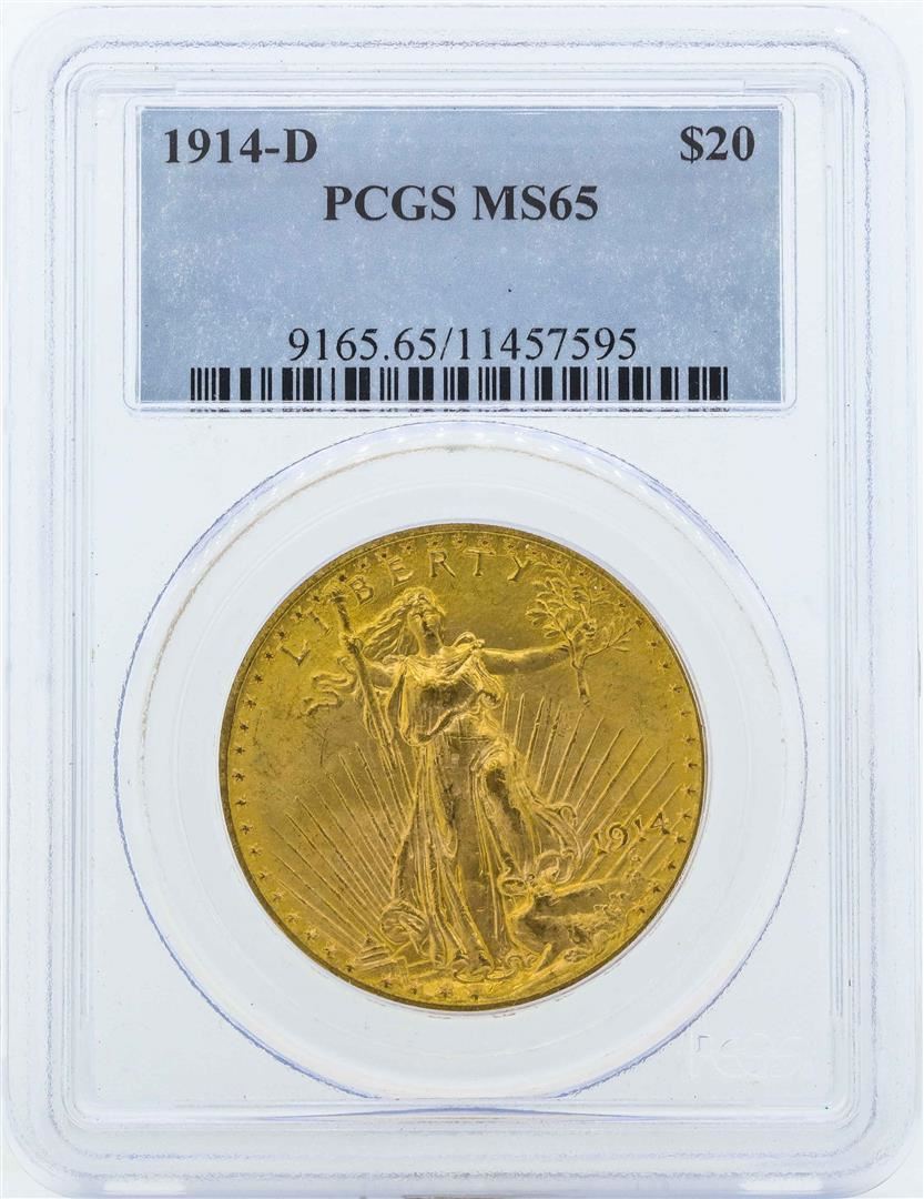 One 1914-D $20 St. Gaudens Double Eagle Gold Coin PCGS MS65. PCGS Graded.