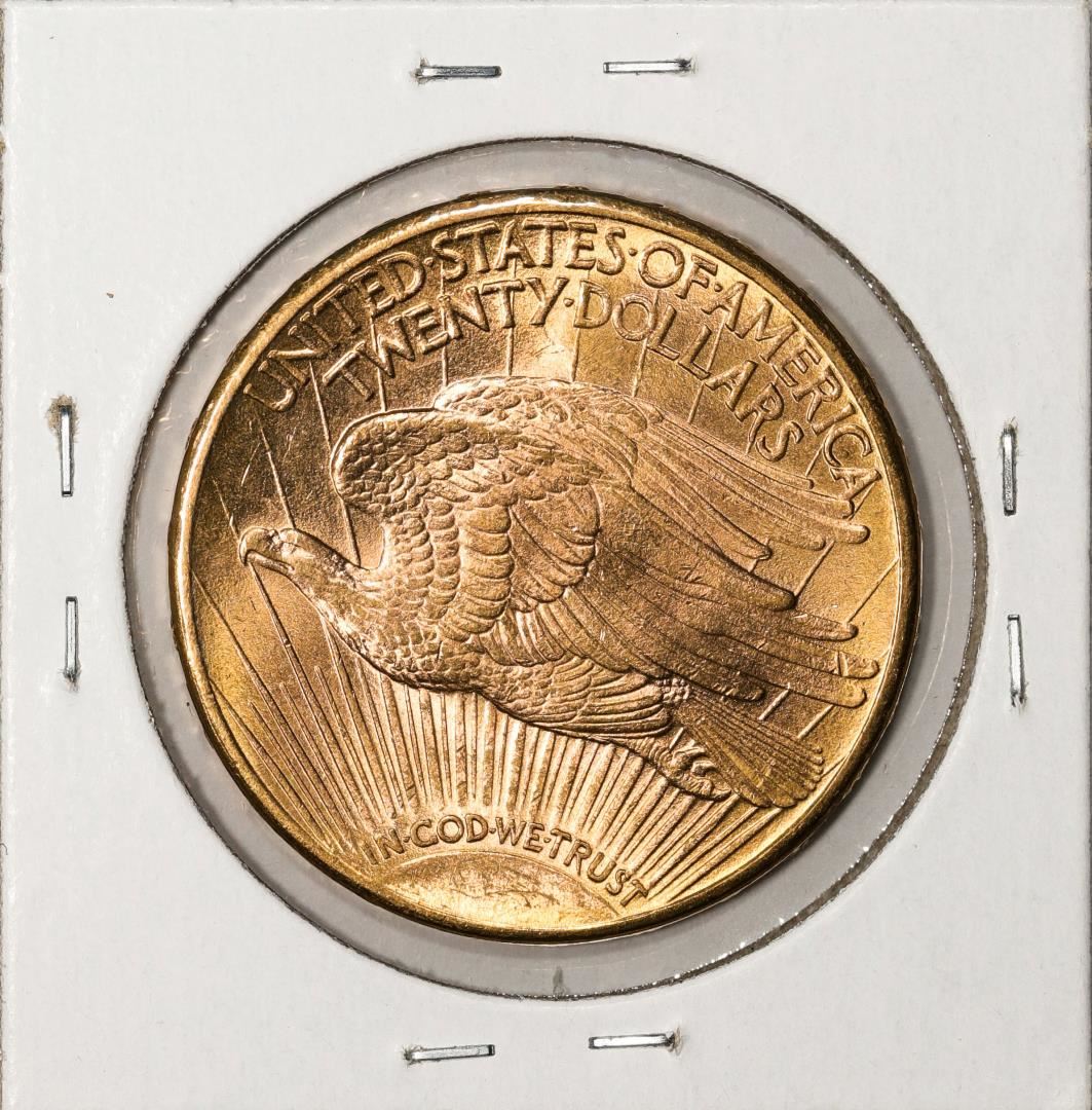 One 1914-D $20 St. Gaudens Double Eagle Gold Coin.