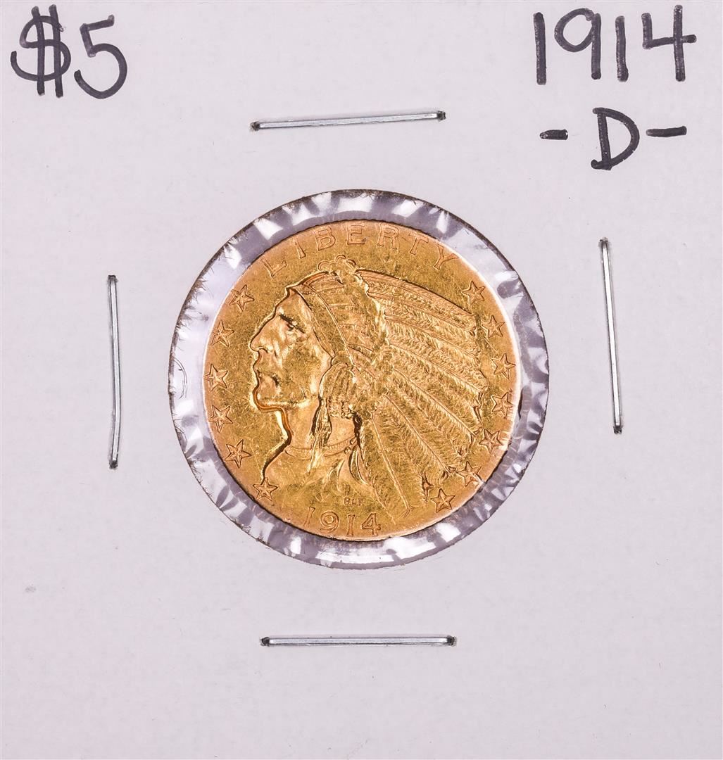 One 1914-D $5 Indian Head Half Eagle Gold Coin.