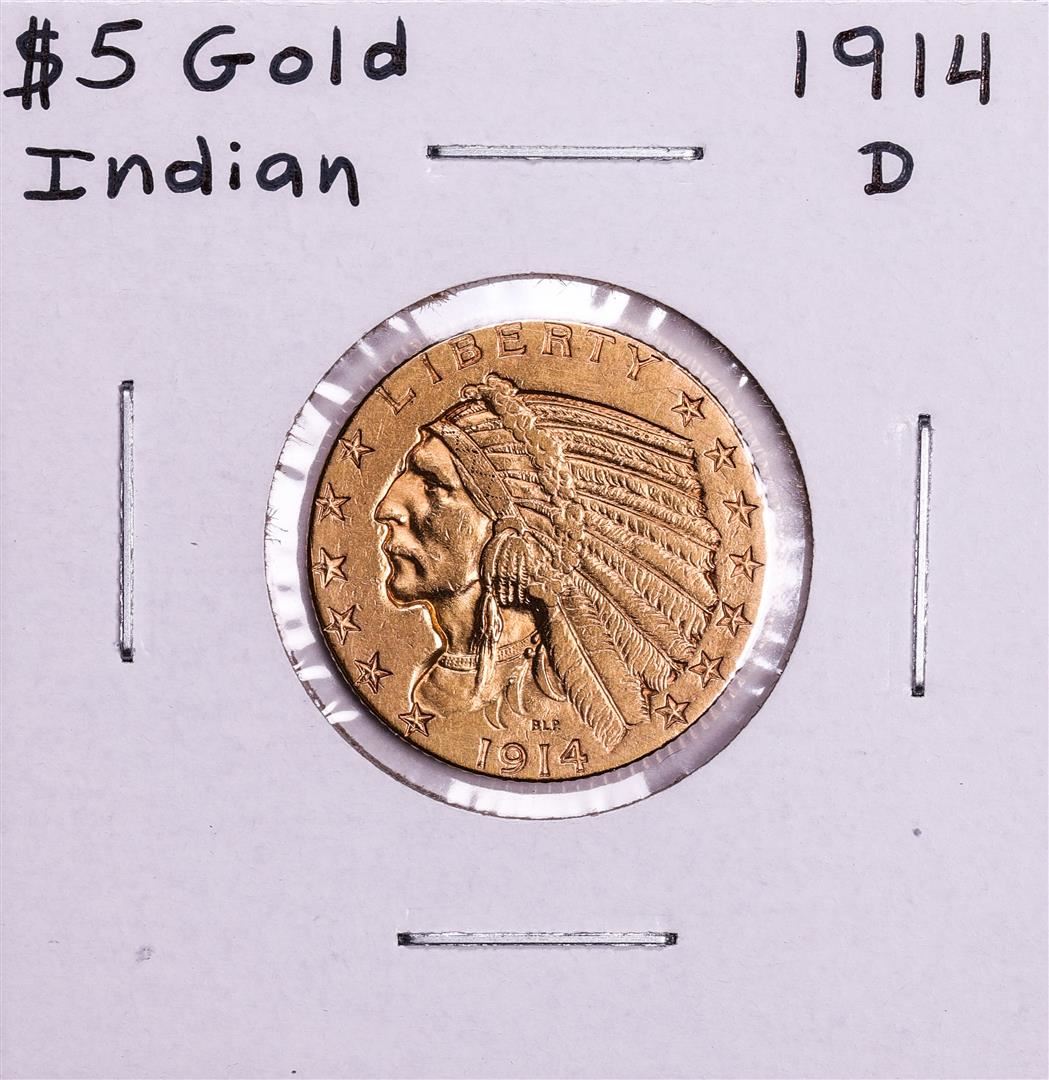 One 1914-D $5 Indian Head Half Eagle Gold Coin.