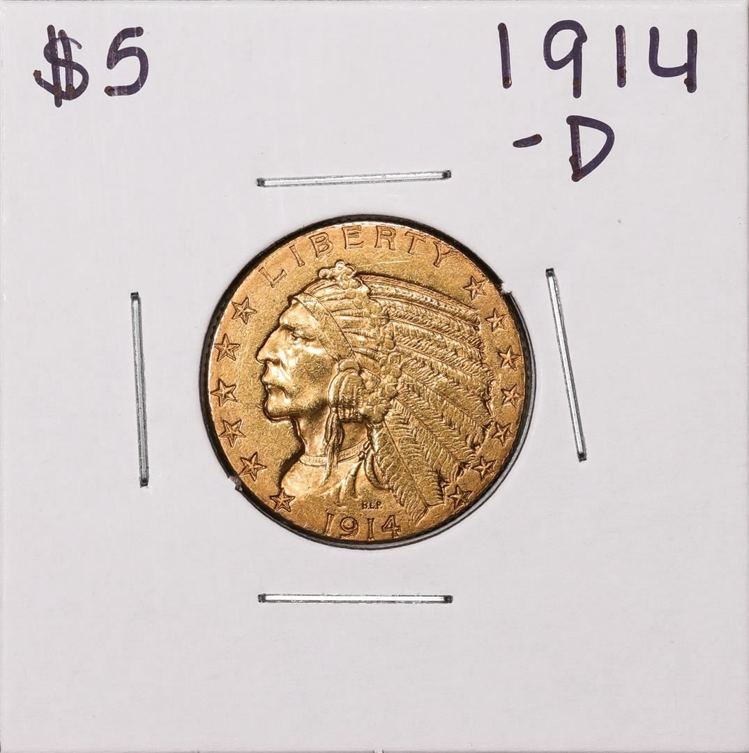 One 1914-D $5 Indian Head Half Eagle Gold Coin.