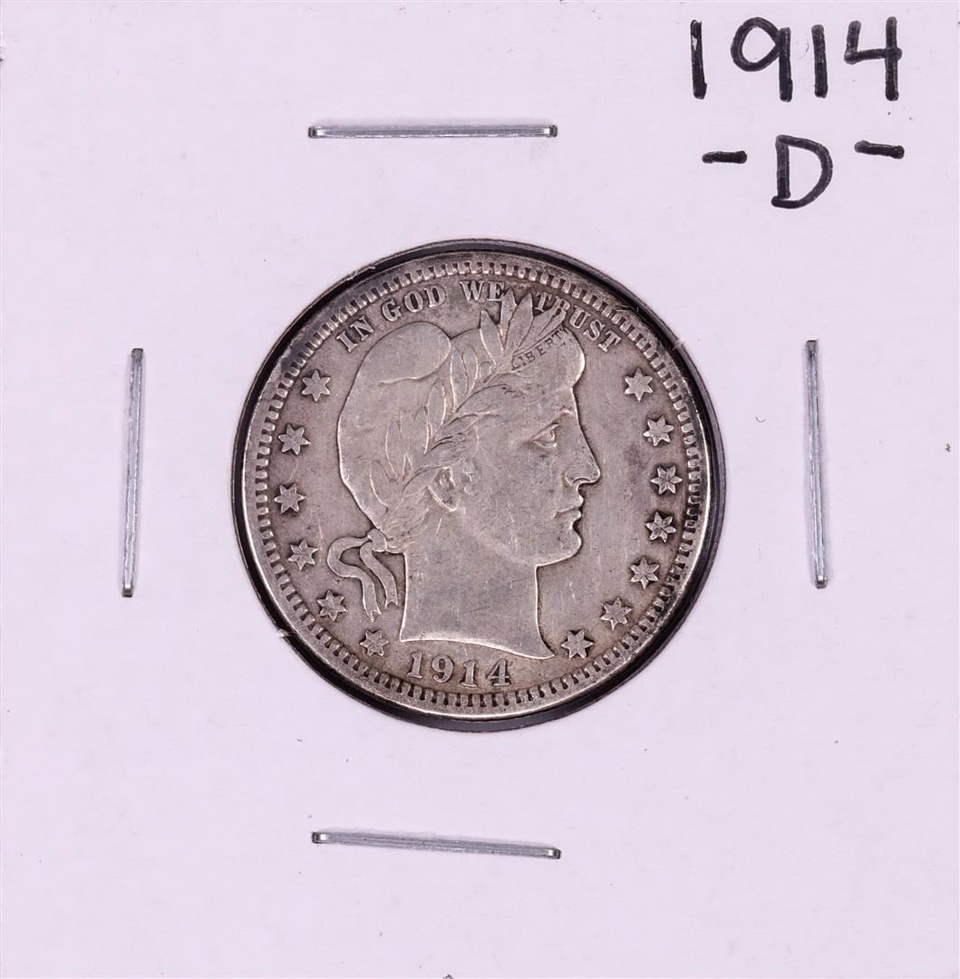 One 1914-D Barber Quarter Coin.