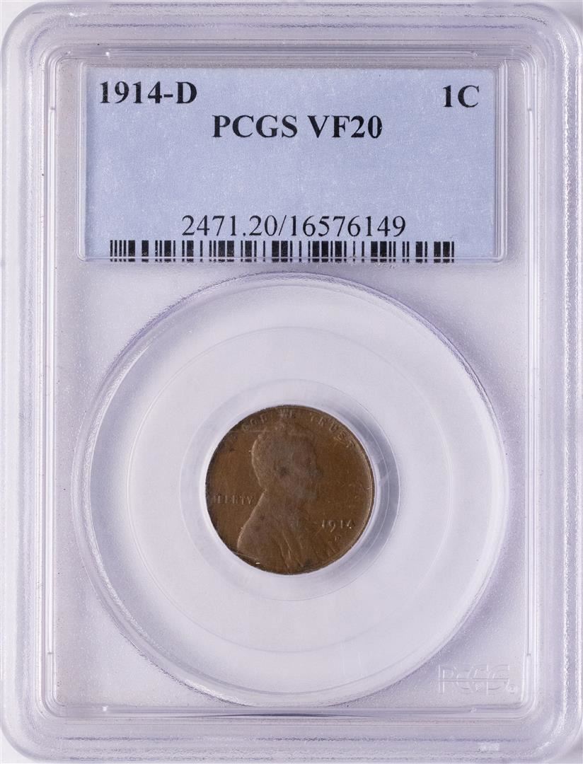 One 1914-D Lincoln Wheat Cent Coin PCGS VF20. PCGS Graded.