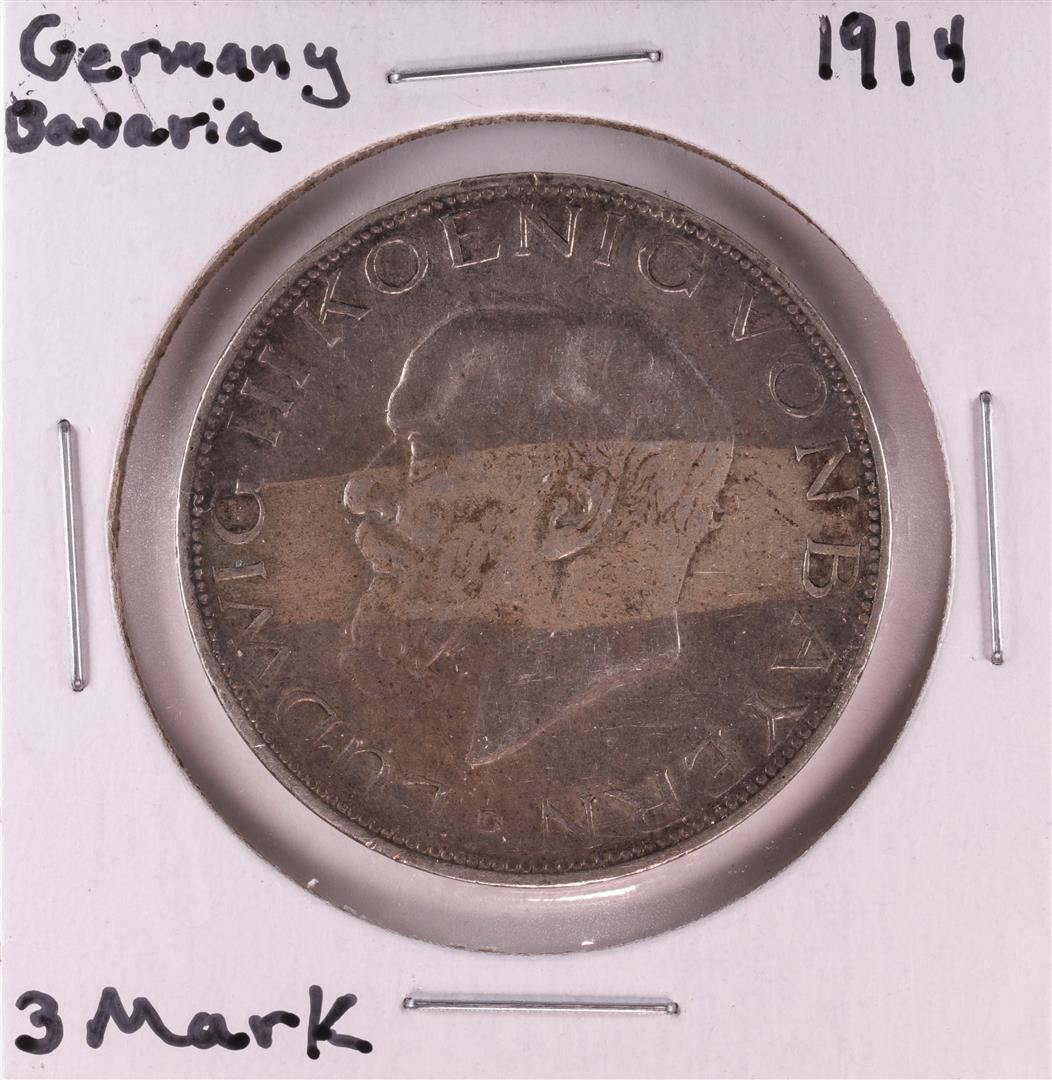 One 1914 Germany Bavaria 3 Mark Silver Coin.