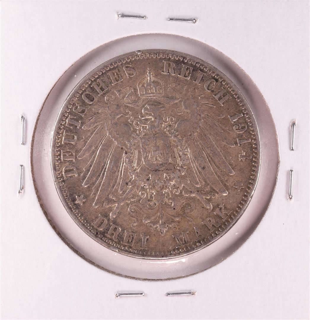 One 1914 Germany Bavaria 3 Mark Silver Coin.