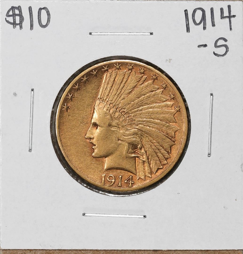 One 1914-S $10 Indian Head Eagle Gold Coin.