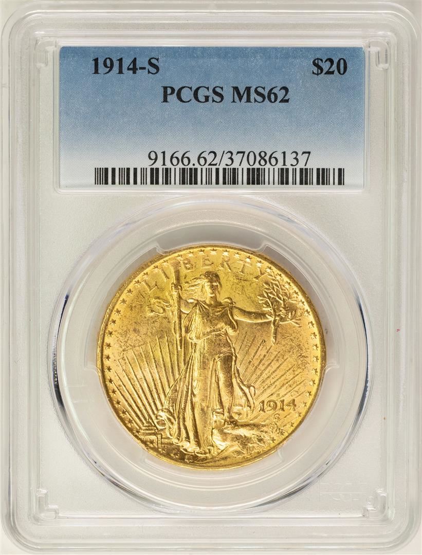 One 1914-S $20 St. Gaudens Double Eagle Gold Coin PCGS MS62. PCGS Graded.