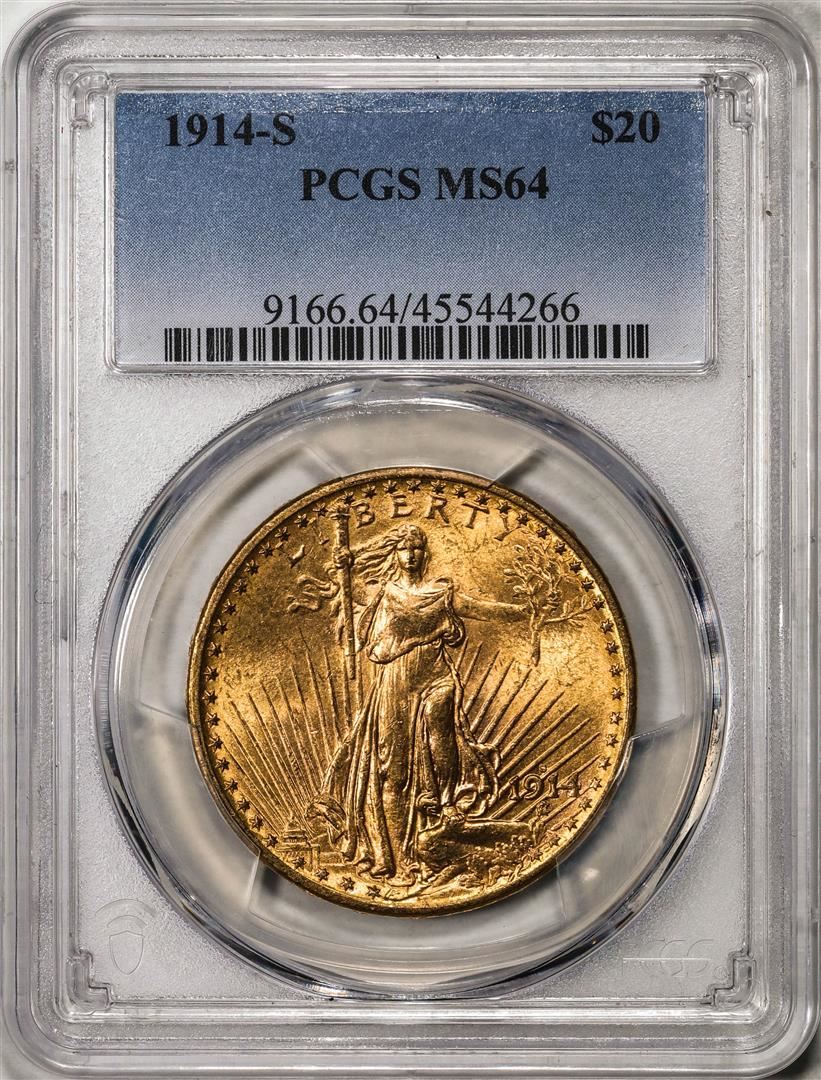 One 1914-S $20 St. Gaudens Double Eagle Gold Coin PCGS MS64. PCGS Graded.